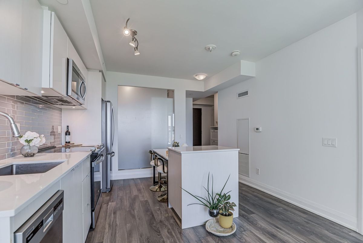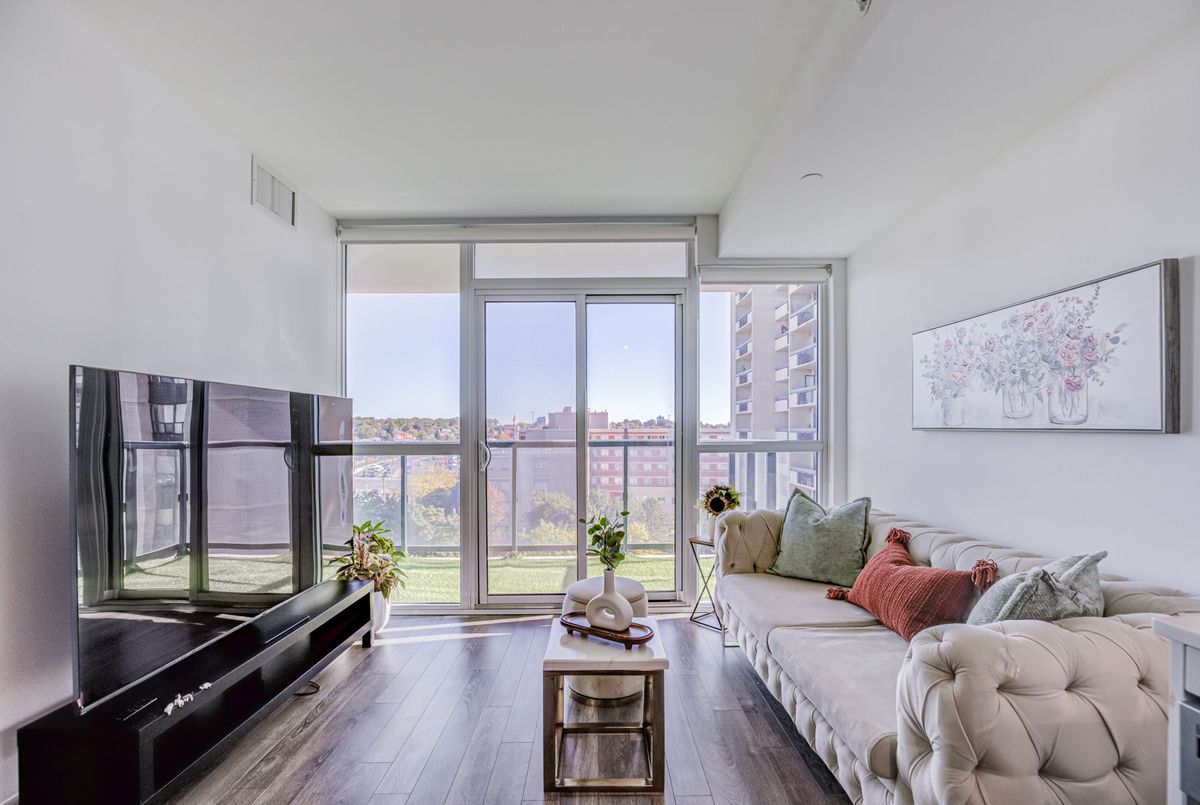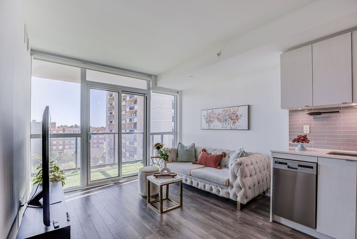 First-time Buyers Start living your best life at Seven on the Park Condos! This beautiful freshly painted 2-bed condo features an A+ floor plan. The sleek modern kitchen is built to impress with a plenty of counter space, and a stylish tile backsplash and stainless steel appliances, all flowing seamlessly into the bright, open-concept living and dining area with floor-to-ceiling windows and Walkout To the Balcony, ideally located just a short walk from the Shopping center, Wall mart,.... Boasting 9-foot ceilings, this suite offers 645 sq. ft. of interior space plus a 118 sq. ft. balcony, Enjoy the added convenience of your own storage locker and one parking space. Residents enjoy premium amenities, including ,concierge, gym, party room, outdoor terrace with BBQs, ,minutes to Hwy 401, Yorkdale Mall, COSTCO .