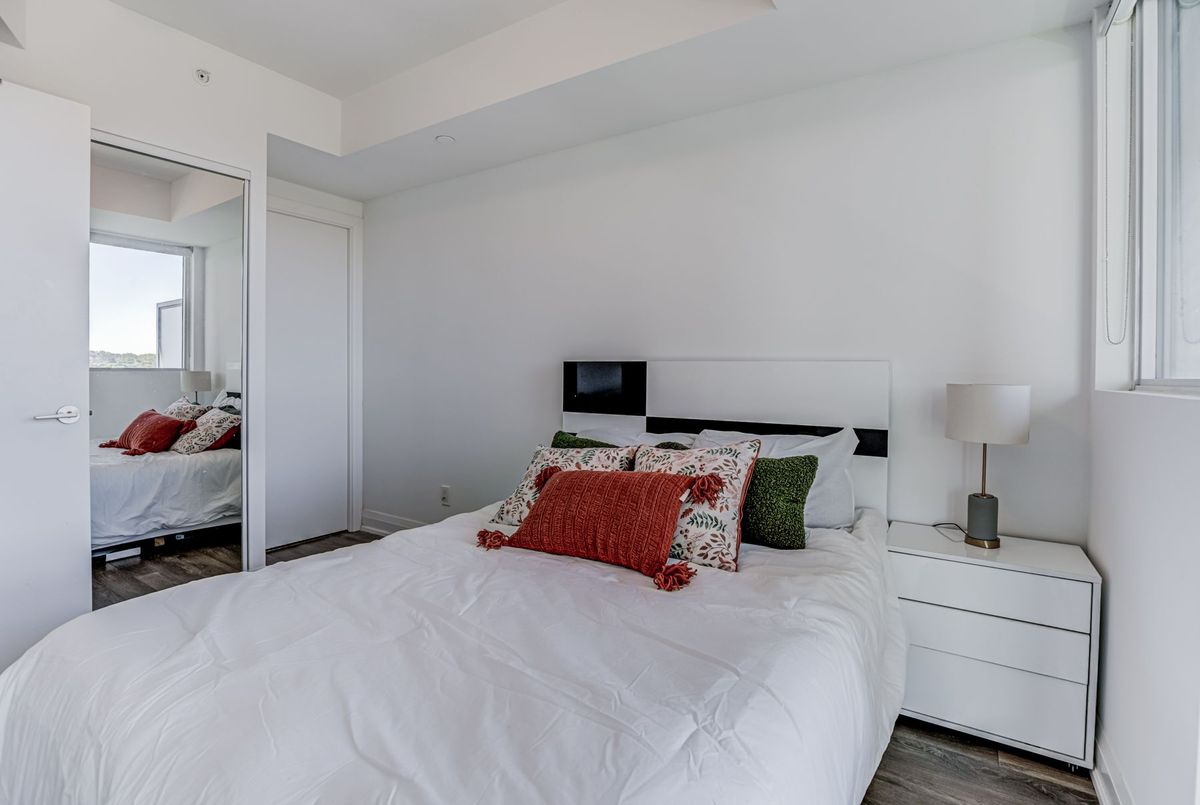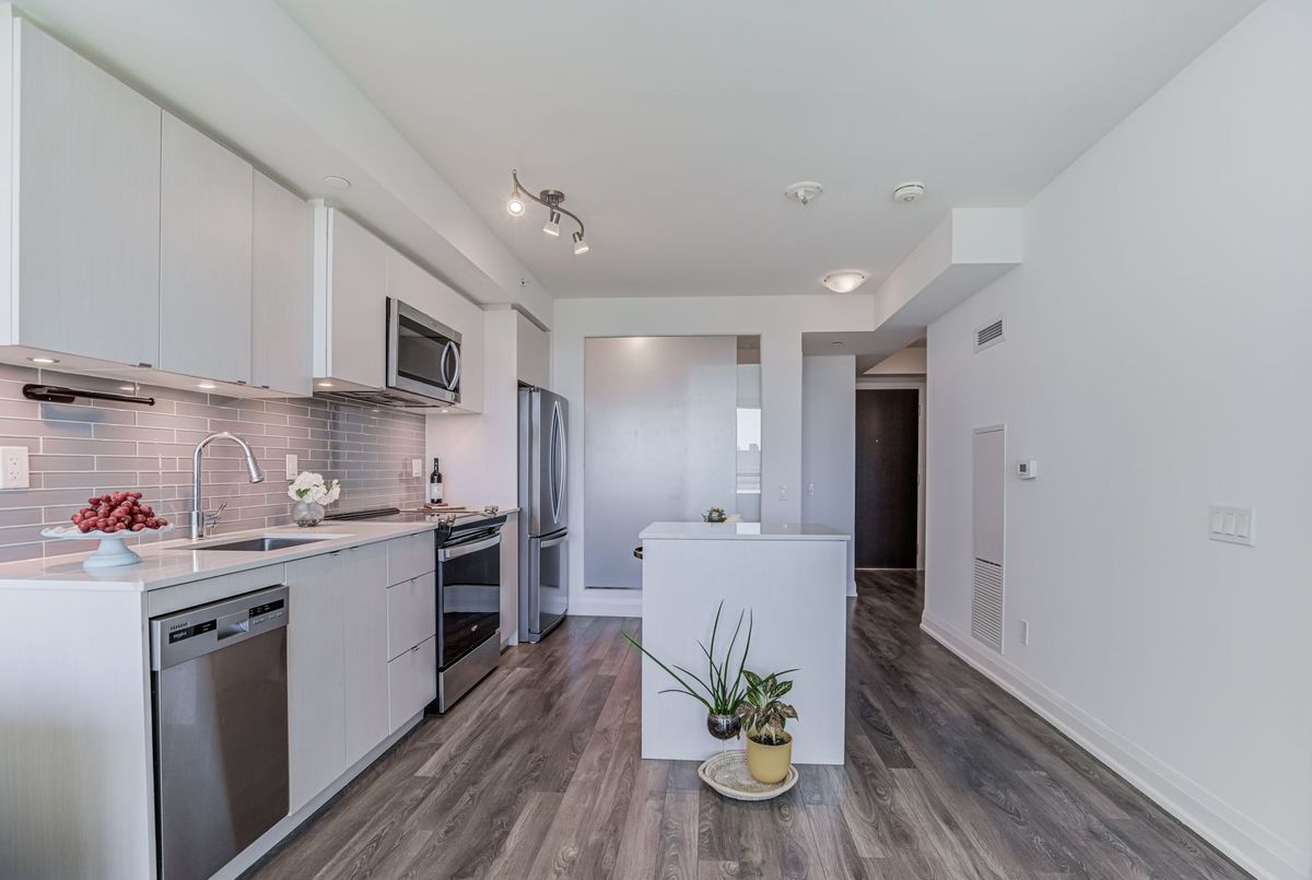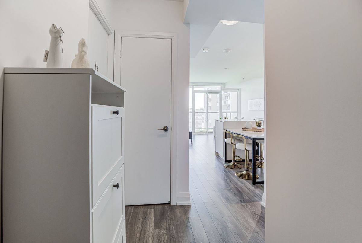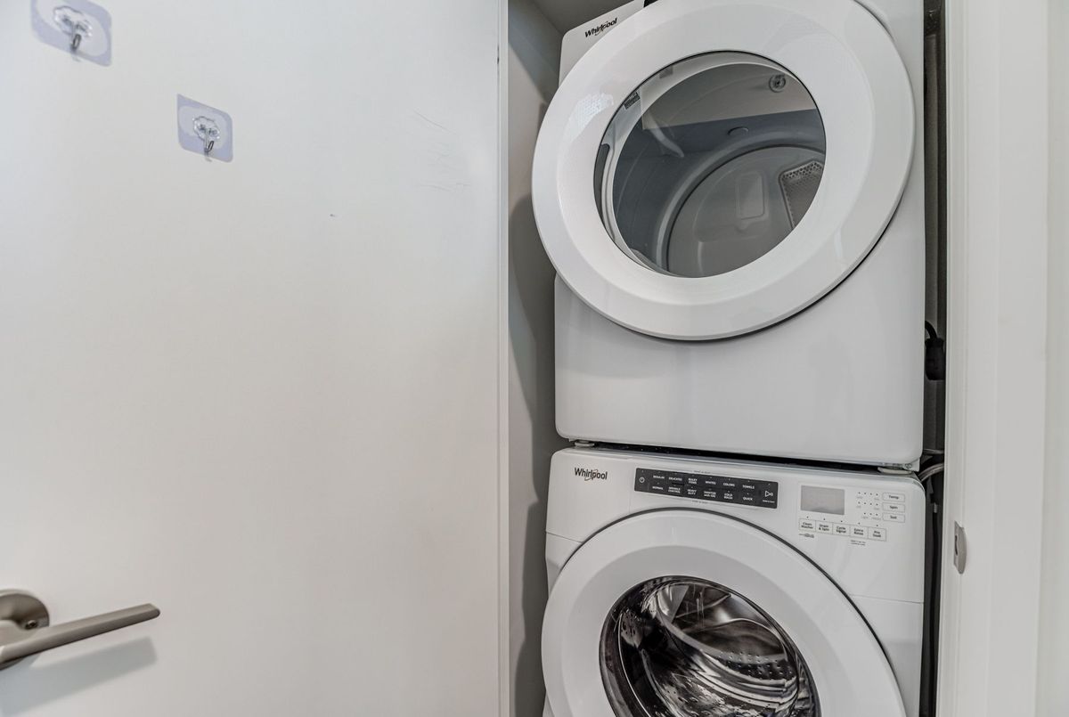 First-time Buyers Start living your best life at Seven on the Park Condos! This beautiful freshly painted 2-bed condo features an A+ floor plan. The sleek modern kitchen is built to impress with a plenty of counter space, and a stylish tile backsplash and stainless steel appliances, all flowing seamlessly into the bright, open-concept living and dining area with floor-to-ceiling windows and Walkout To the Balcony, ideally located just a short walk from the Shopping center, Wall mart,.... Boasting 9-foot ceilings, this suite offers 645 sq. ft. of interior space plus a 118 sq. ft. balcony, Enjoy the added convenience of your own storage locker and one parking space. Residents enjoy premium amenities, including ,concierge, gym, party room, outdoor terrace with BBQs, ,minutes to Hwy 401, Yorkdale Mall, COSTCO .